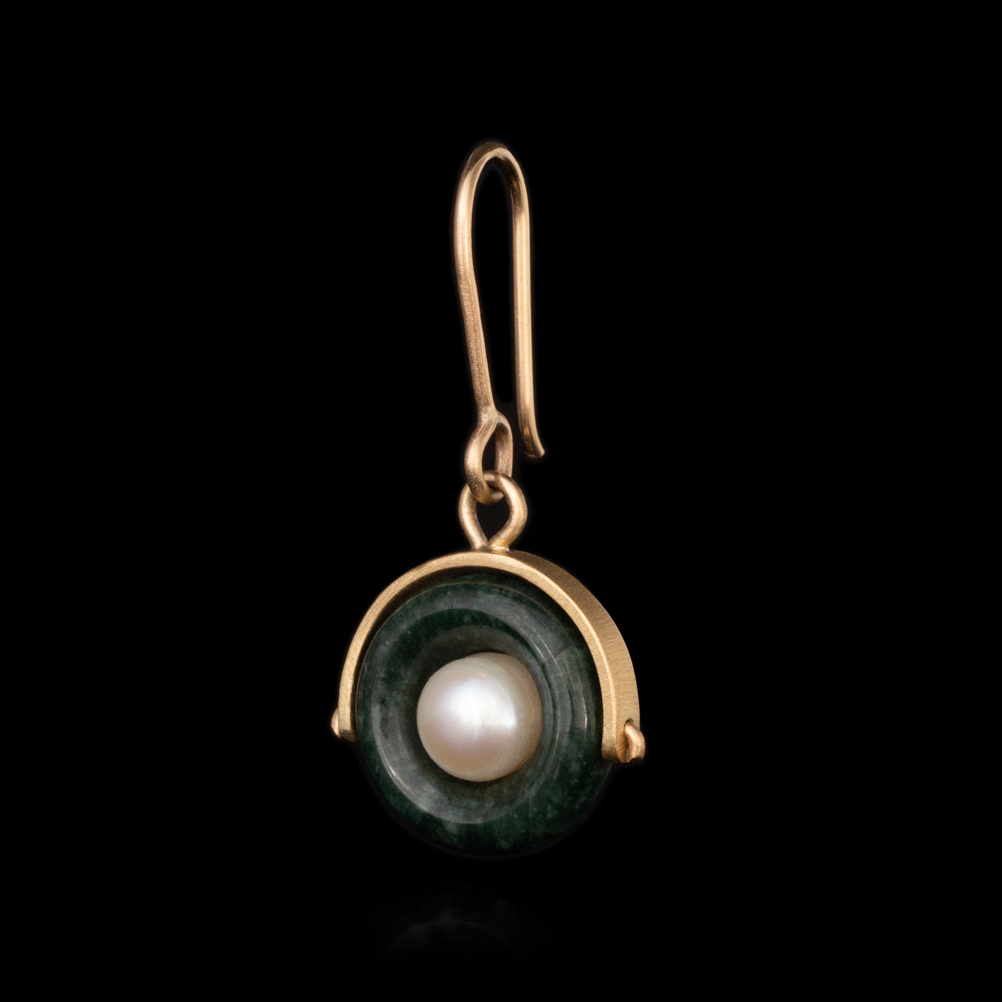 One of a kind Guatemalan jadeite and natural pearl in 14K yellow gold earrings.
