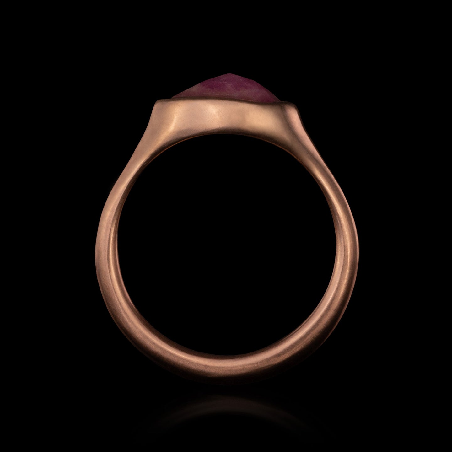 Made with a gorgeous rose cut pink sapphire with the kind of colour zoning that will probably give you magical powers. Set in 10K Rose Gold.